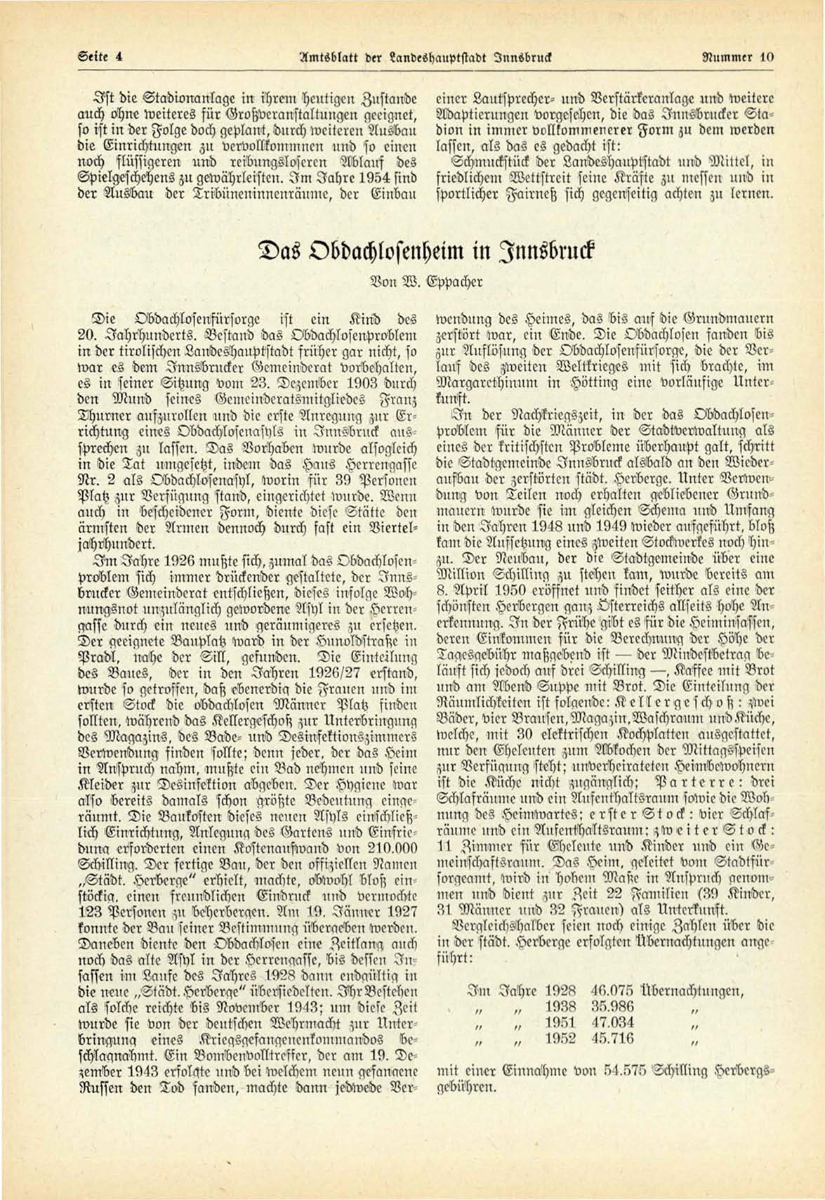 Dhurncr aufzurollen und die erste Anregung zur Errichtung eines Obdachlosenasyls in Innsbruck aussprechen zu lassen. Das Vorhaben wurde alsoglcich