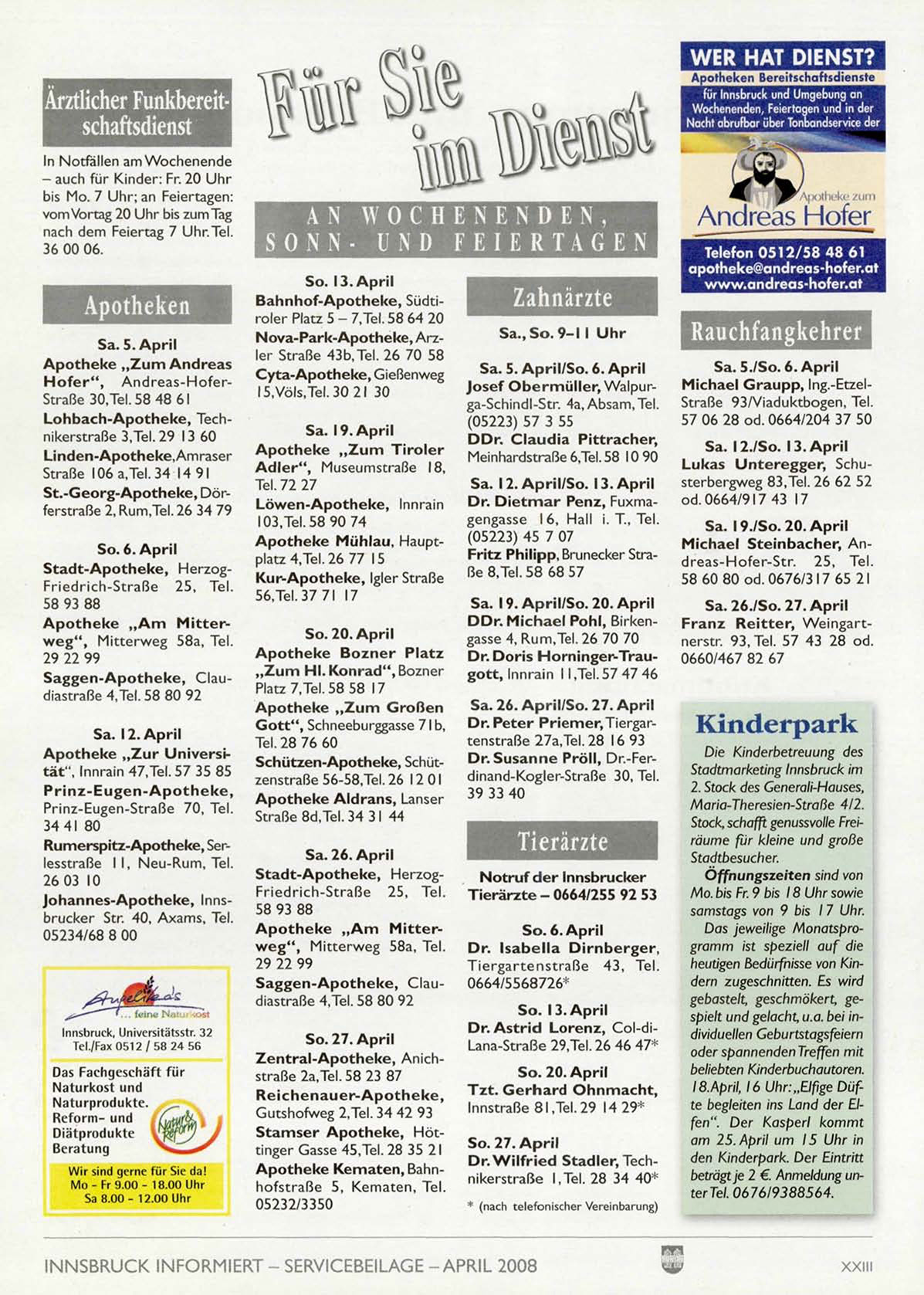 INNSBRUCK INFORMIERT - SERVICEBEILAGE -APRIL 2008