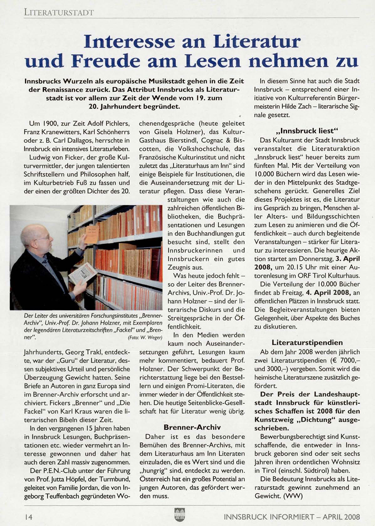 in Innsbruck Lesungen, Buchpräsentationen etc. wieder vermehrt an Interesse gewonnen und daher hat