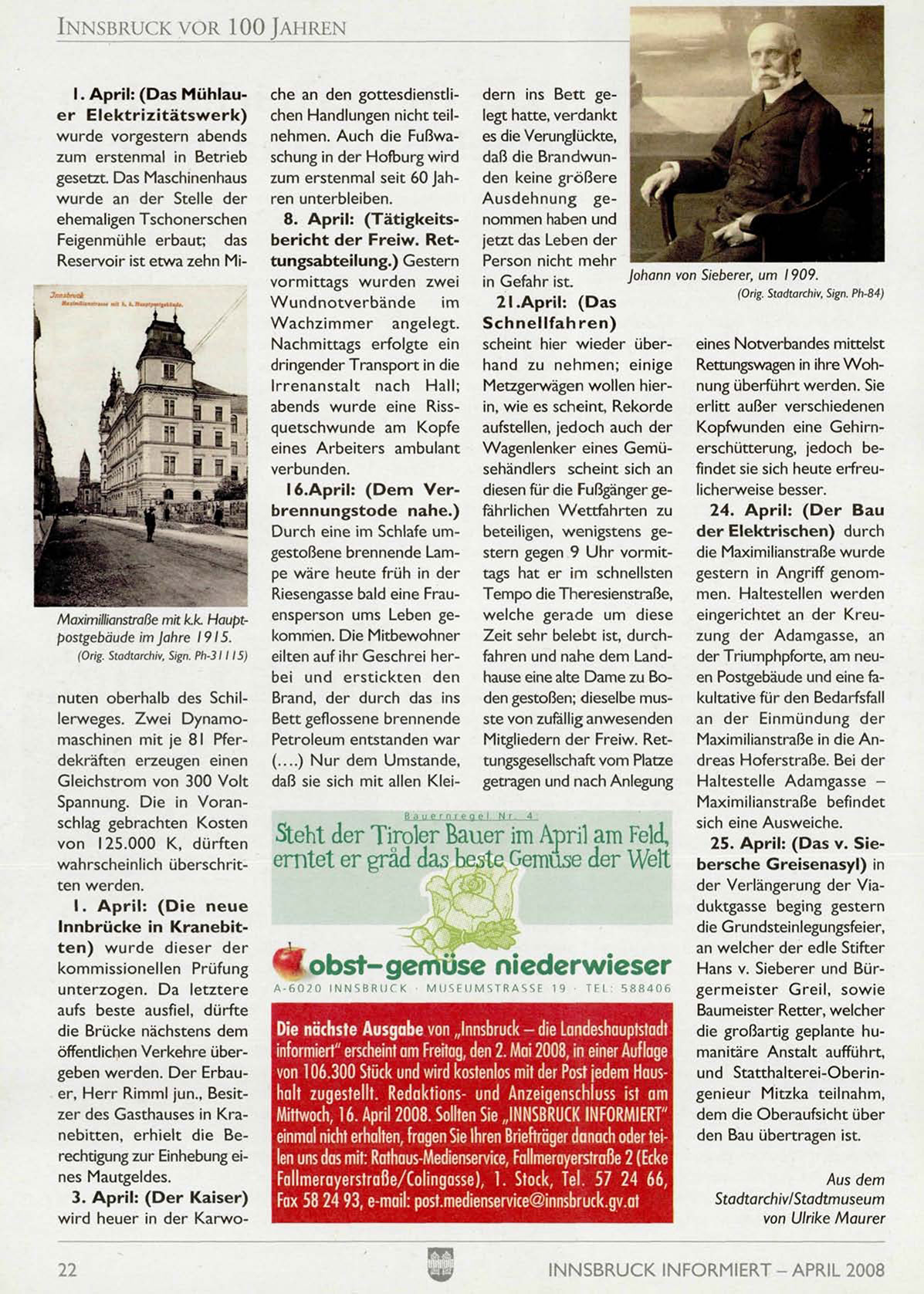 Mittwoch, 16. April 2008. Sollten Sie „INNSBRUCK INFORMIERT"
