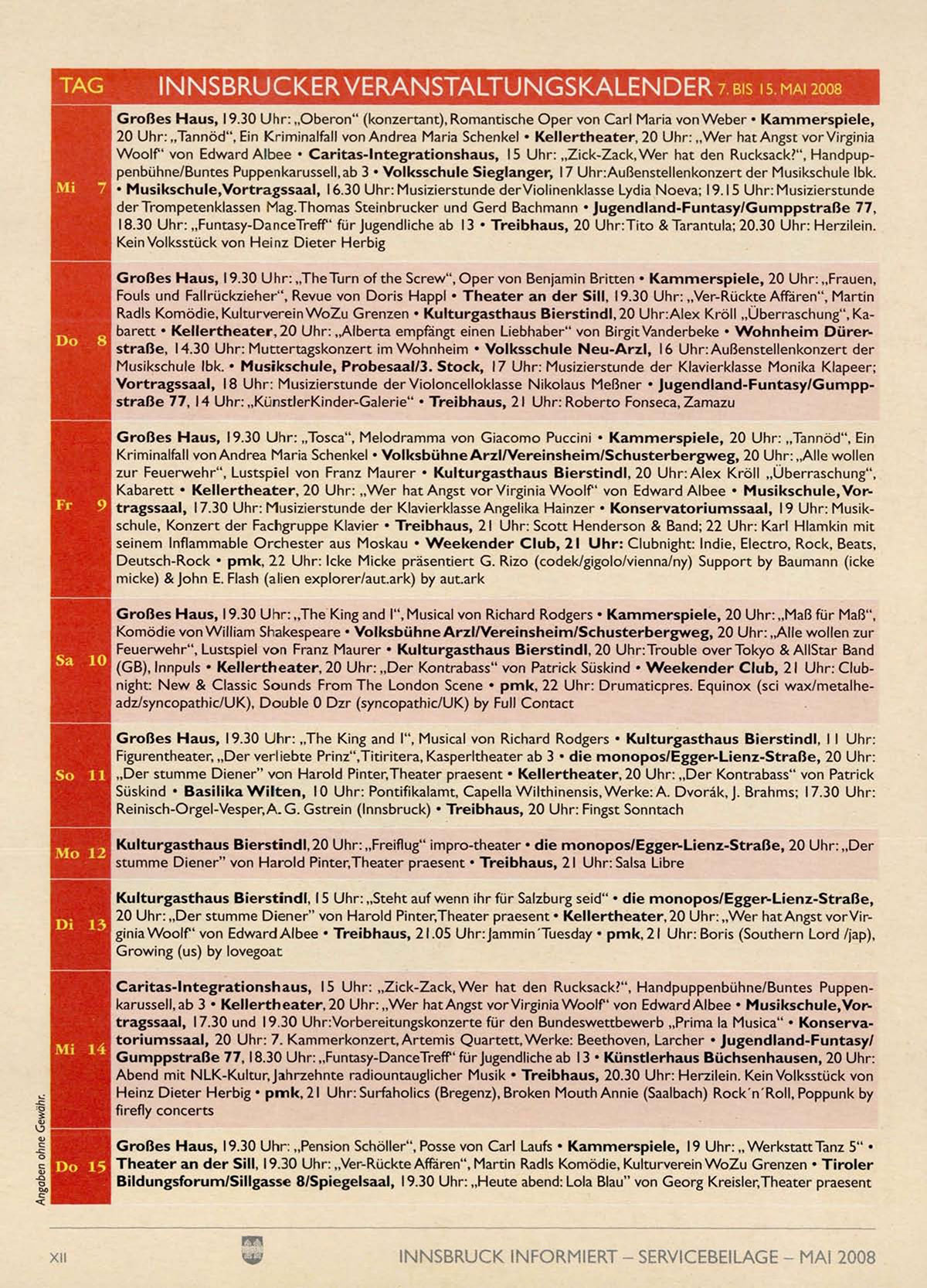 INNSBRUCKER VERANSTALTUNGSKALENDER 7.BIS
