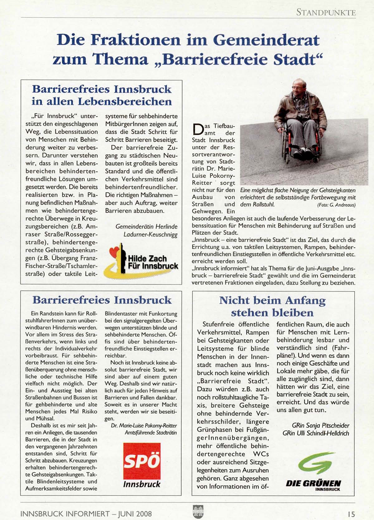 „Innsbruck informiert" hat als Thema für die Juni-Ausgabe „Innsbruck — barrierefreie Stadt" gewählt und die im Gemeinderat