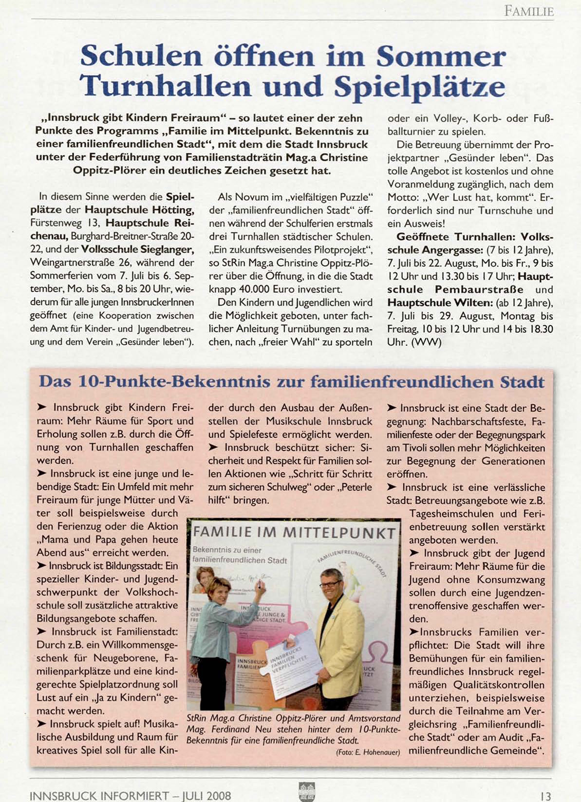 >• Innsbruck spielt auf! Musikagleichsring „FamilienfreundliMag. Ferdinand Neu stehen hinter dem I0-Punktelische Ausbildung und Raum für Bekenntnis für eine familienfreundliche Stadt.