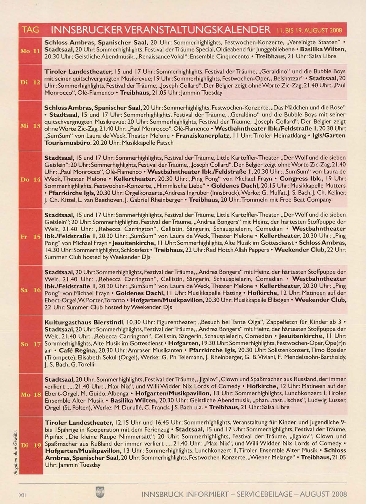 INNSBRUCK INFORMIERT - SERVICEBEILAGE -AUGUST 2008
