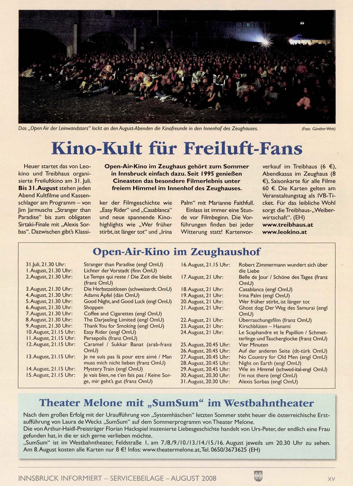 INNSBRUCK INFORMIERT - SERVICEBEILAGE -AUGUST 2008