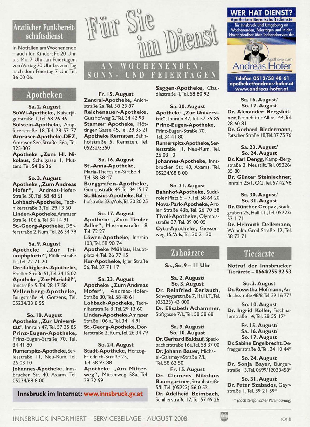 INNSBRUCK INFORMIERT - SERVICEBEILAGE -AUGUST 2008
