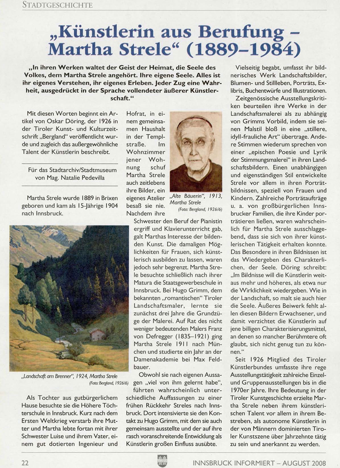 Tiroler Kunstgeschichte erzielte Martha Strele neben ihrem künstlerischen Talent vor allem in ihrem Bestreben, als autonome Künstlerin in