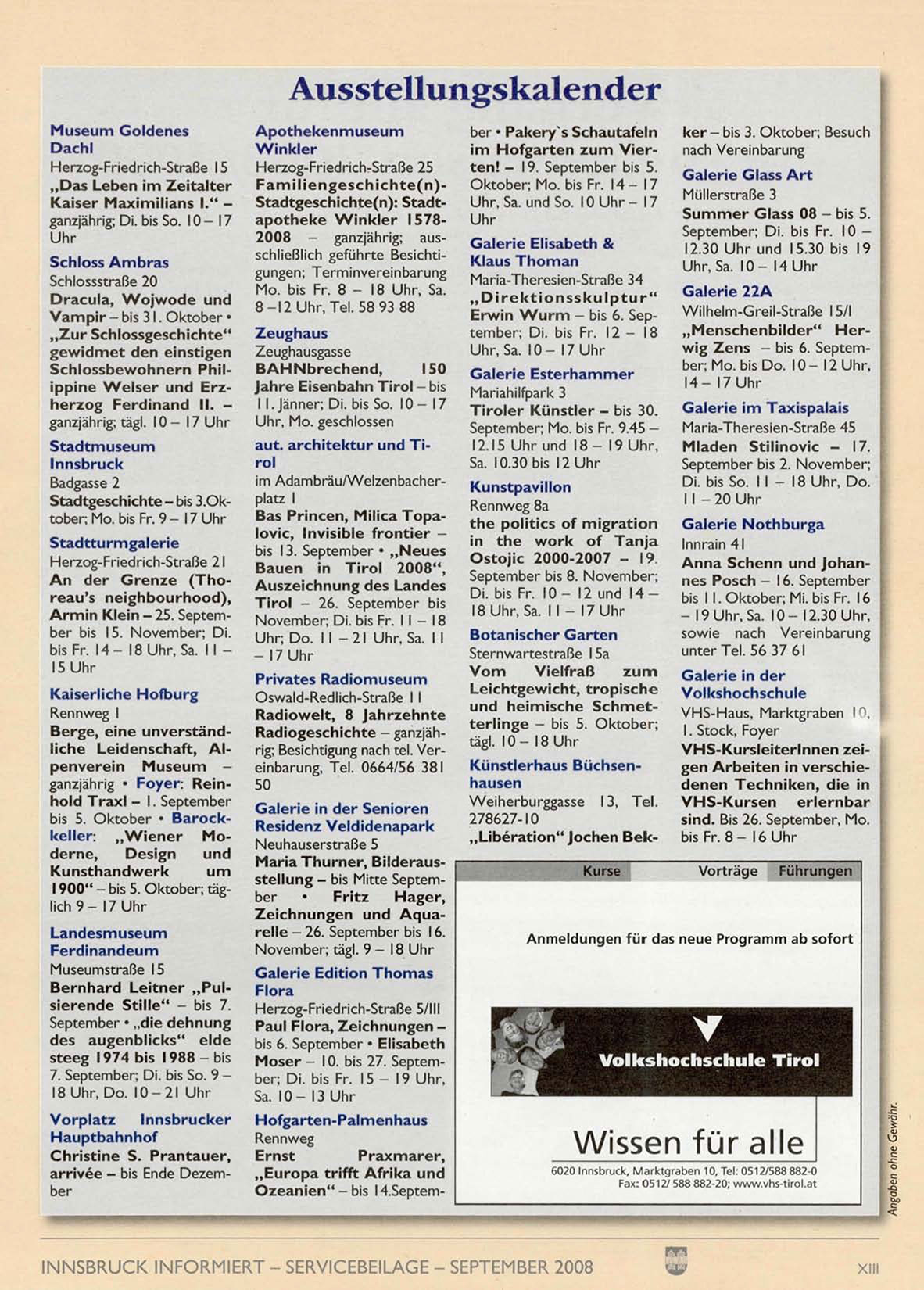 INNSBRUCK INFORMIERT - SERVICEBEILAGE - SEPTEMBER 2008