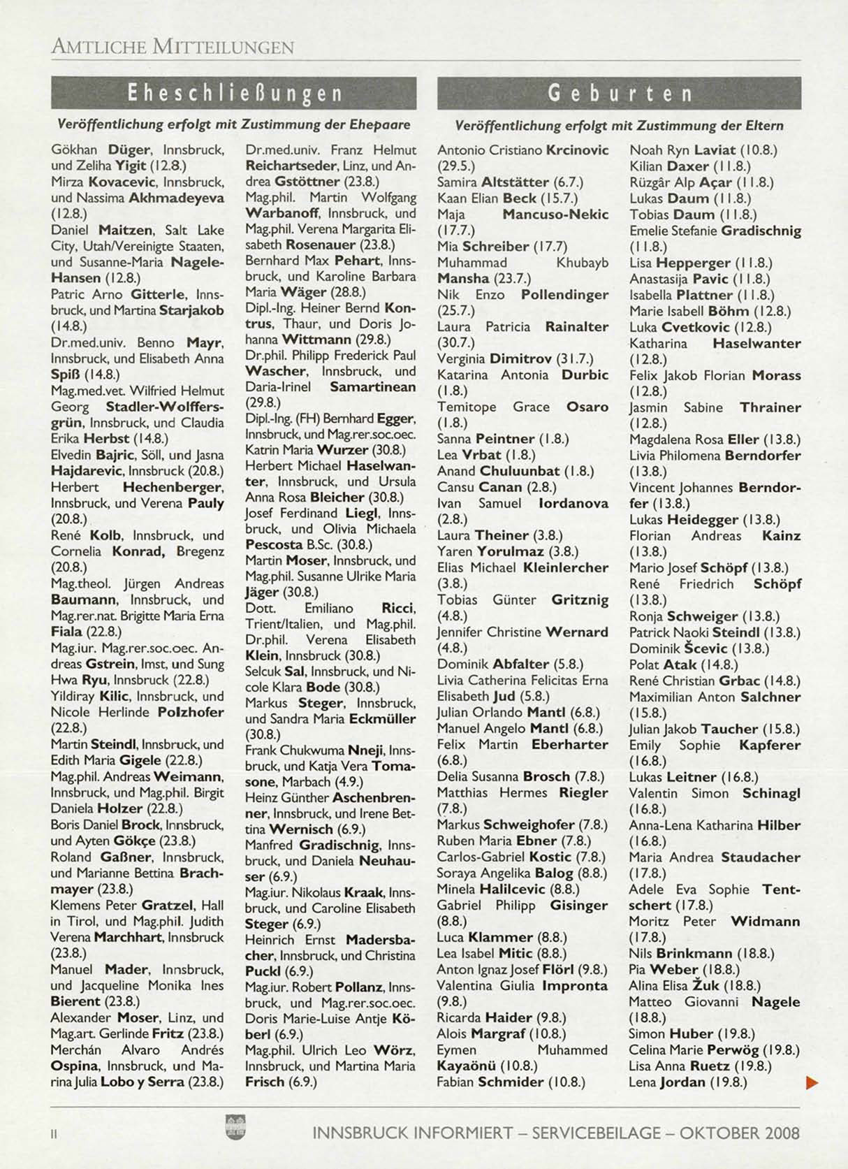 INNSBRUCK INFORMIERT - SERVICEBEILAGE - OKTOBER 2008