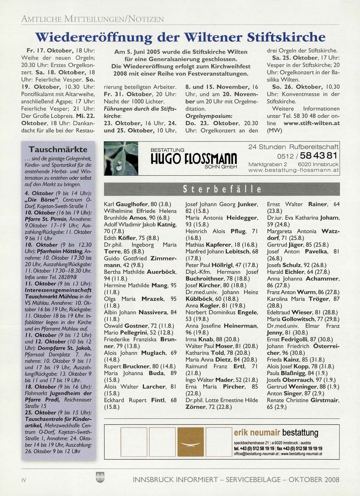 INNSBRUCK INFORMIERT - SERVICEBEILAGE - OKTOBER 2008