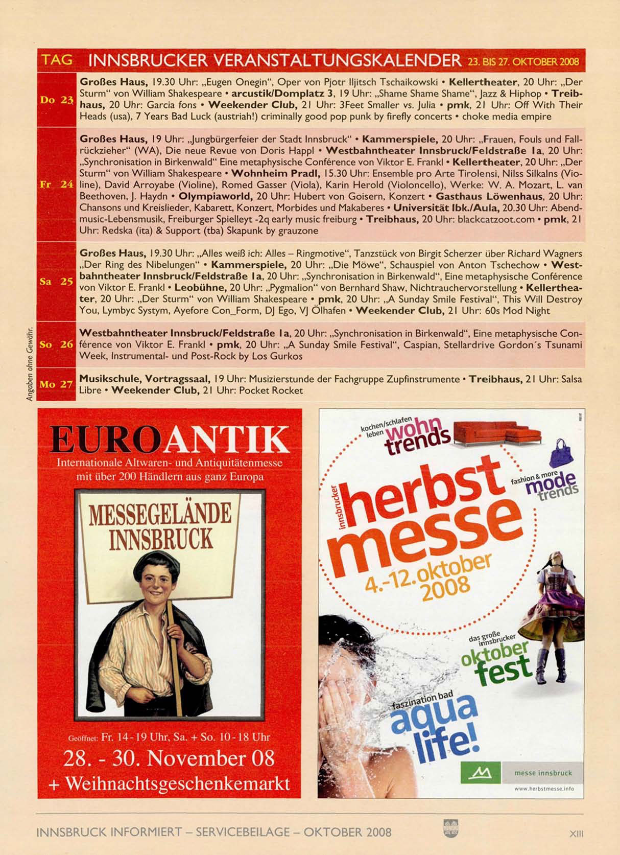 INNSBRUCKER VERANSTALTUNGSKALENDER 21 BIS27.OKTOBER2008