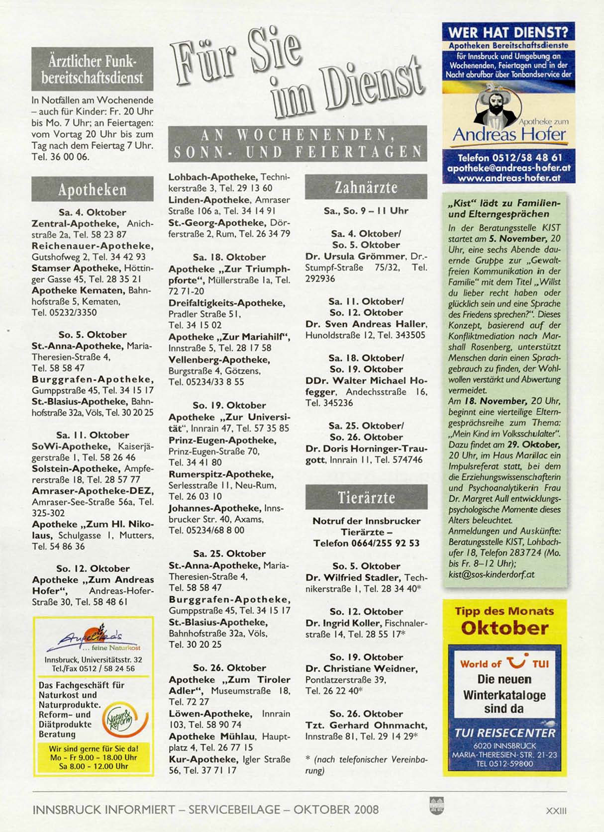 INNSBRUCK INFORMIERT - SERVICEBEILAGE - OKTOBER 2008