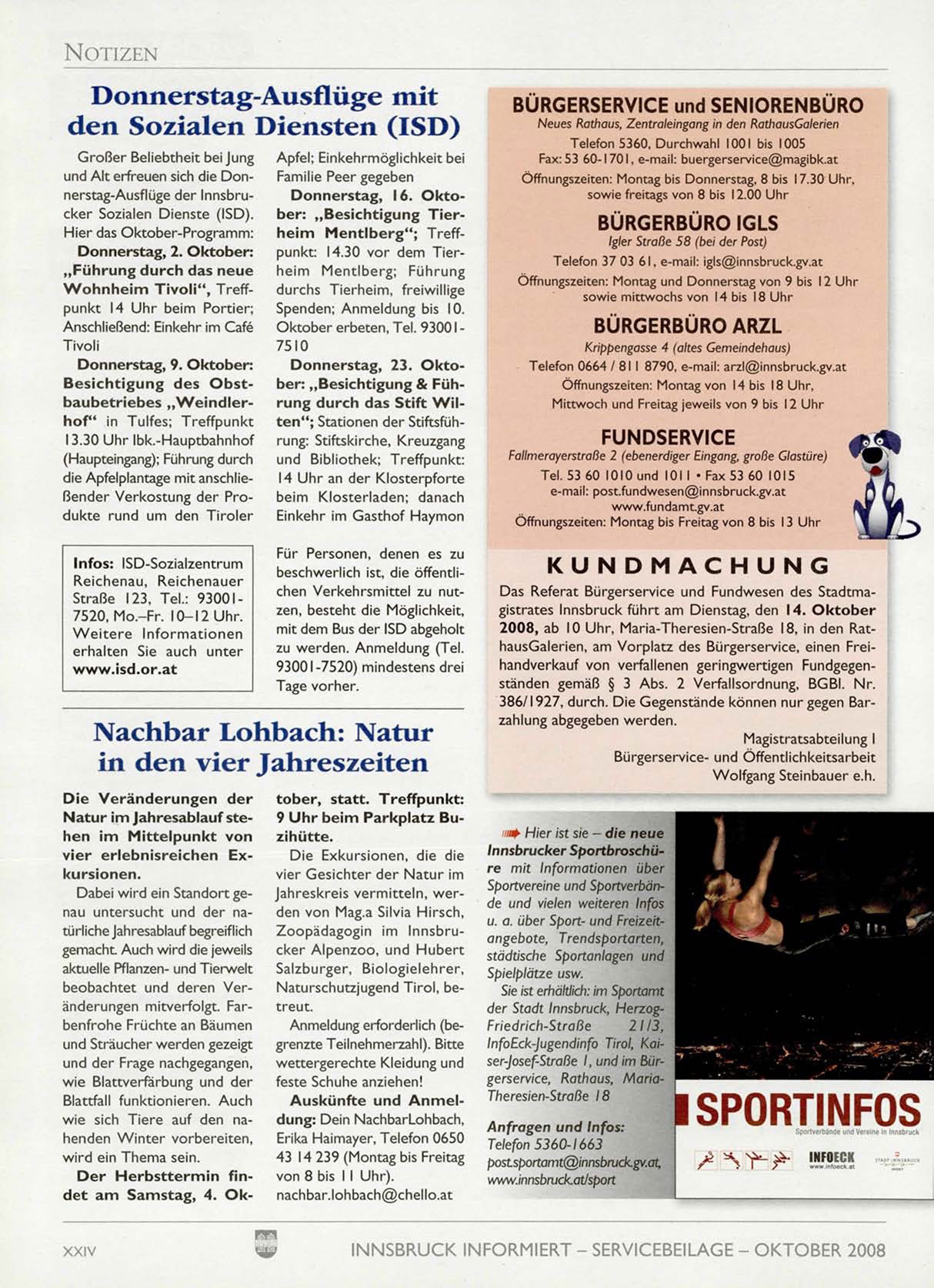 INNSBRUCK INFORMIERT - SERVICEBEILAGE - OKTOBER 2008