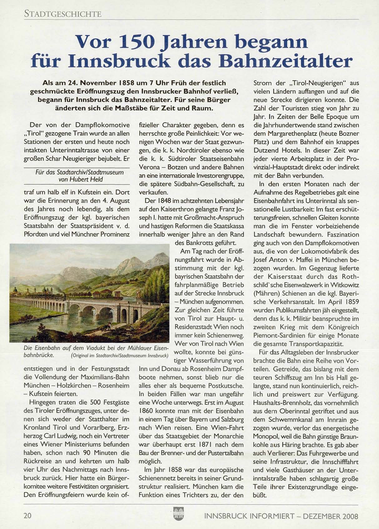 b e g a n n f ü r I n n s b r u c k das B a h n z e i t a l t e r . F ü r seine B ü r g e r