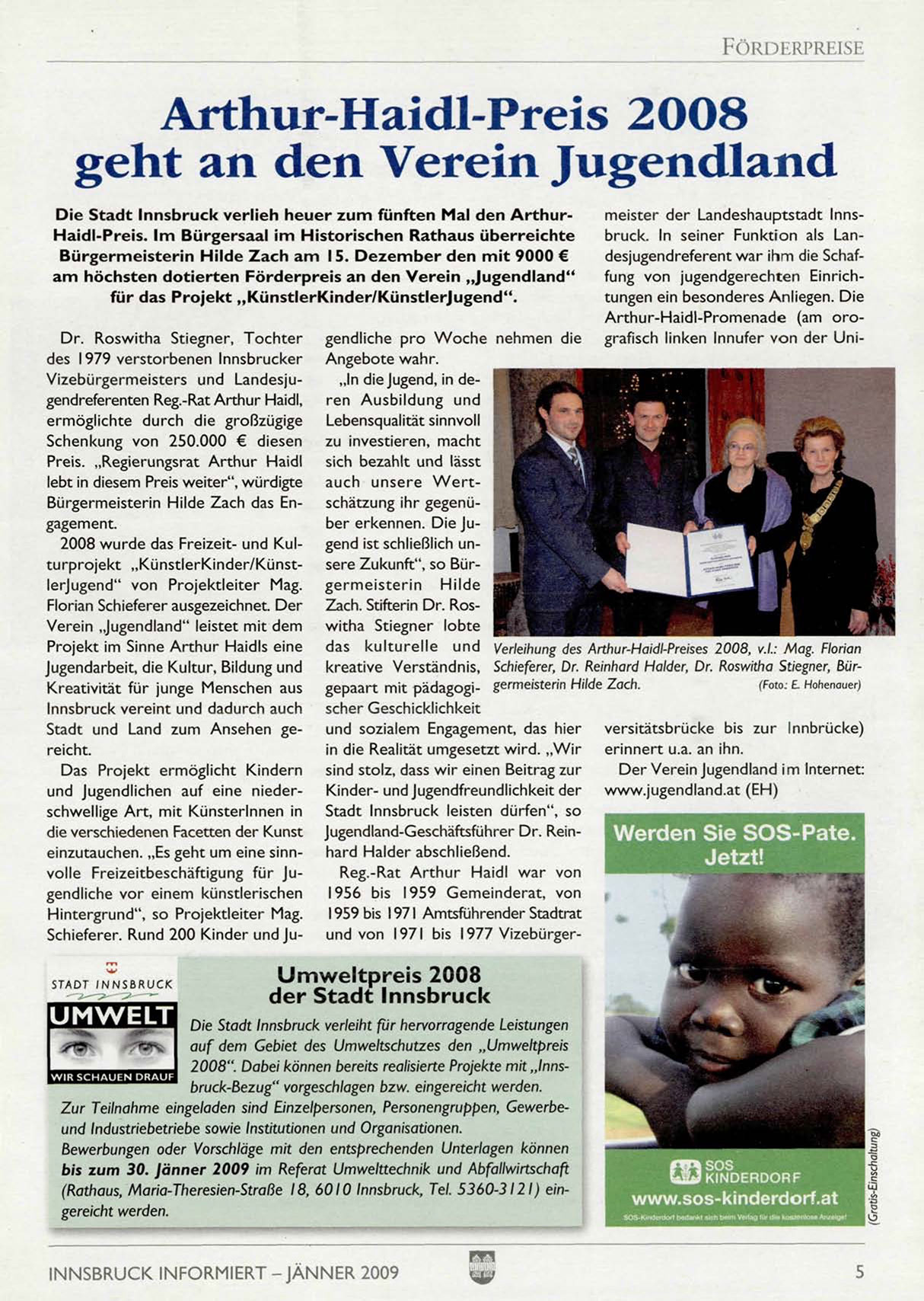 das k u l t u r e l l e und Verleihung des Arthur-Haidl-Preises 2008, v.l.: Mag. Florian