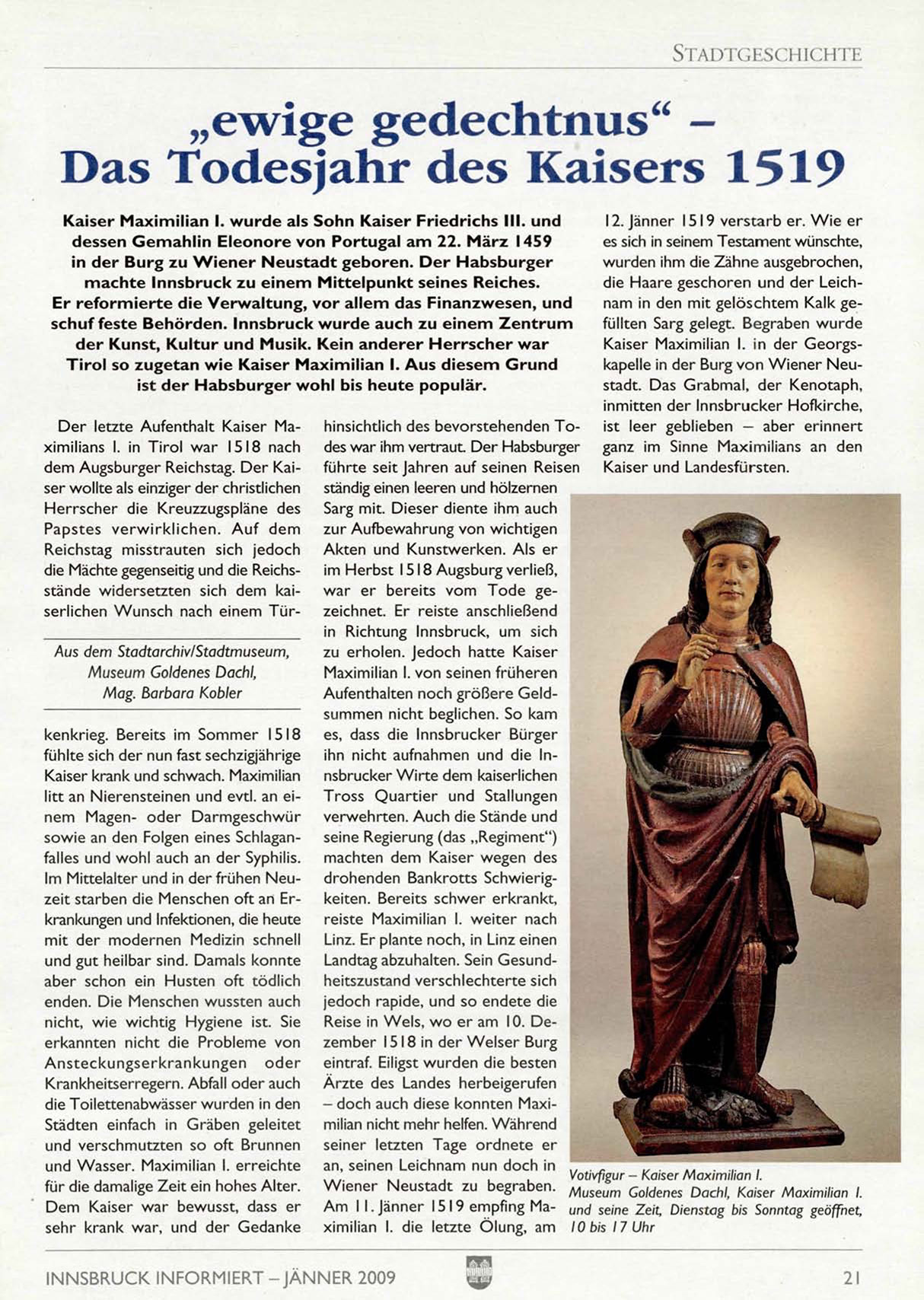 A m I I. Jänner 1519 empfing Ma- Museum Goldenes Dachl, Kaiser Maximilian I.