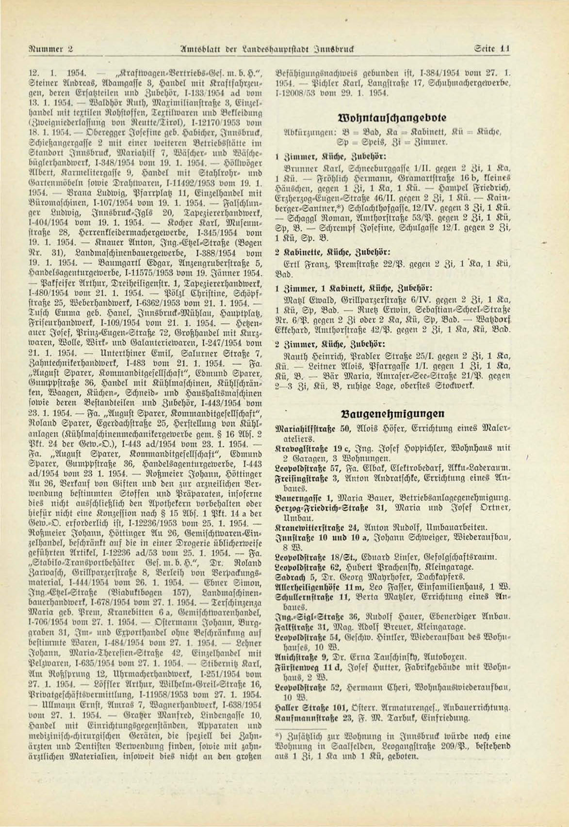 Standort Innsoruck, Mariahilf 7, Wäscher- nnd Wäschebnglrrhandwcrk, 1-318/1954 vom 19. I. 1954. - Höllwöger