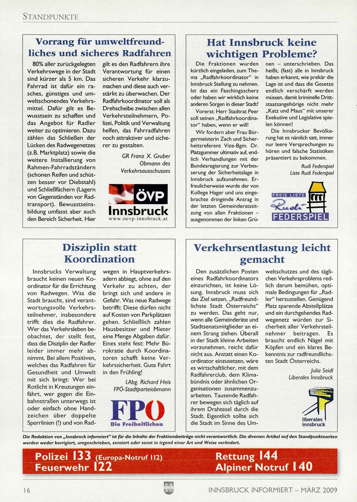 Die Redaktion von „Innsbruck informiert" ist für die Inhalte der Fraktionsbeiträge nicht verantwortlich. Die diversen Artikel auf den
