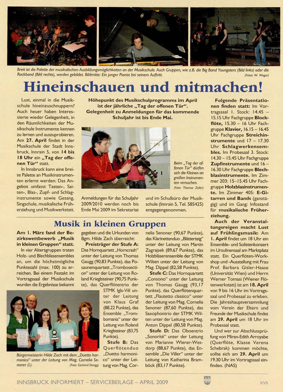 und im Schulbüro der Musikschule (Innrain 5, Tel. 585425)