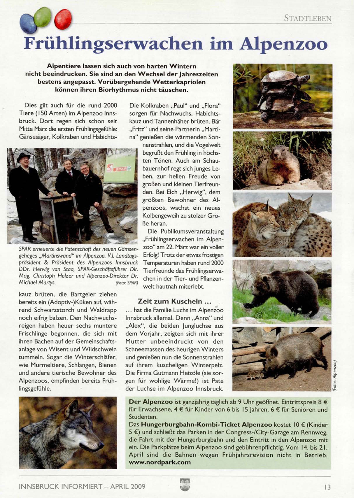 „Frühlingserwachen im AlpenSPAR erneuerte die Patenschaft des neuen Gämsen- zoo" am 22. März war ein voller