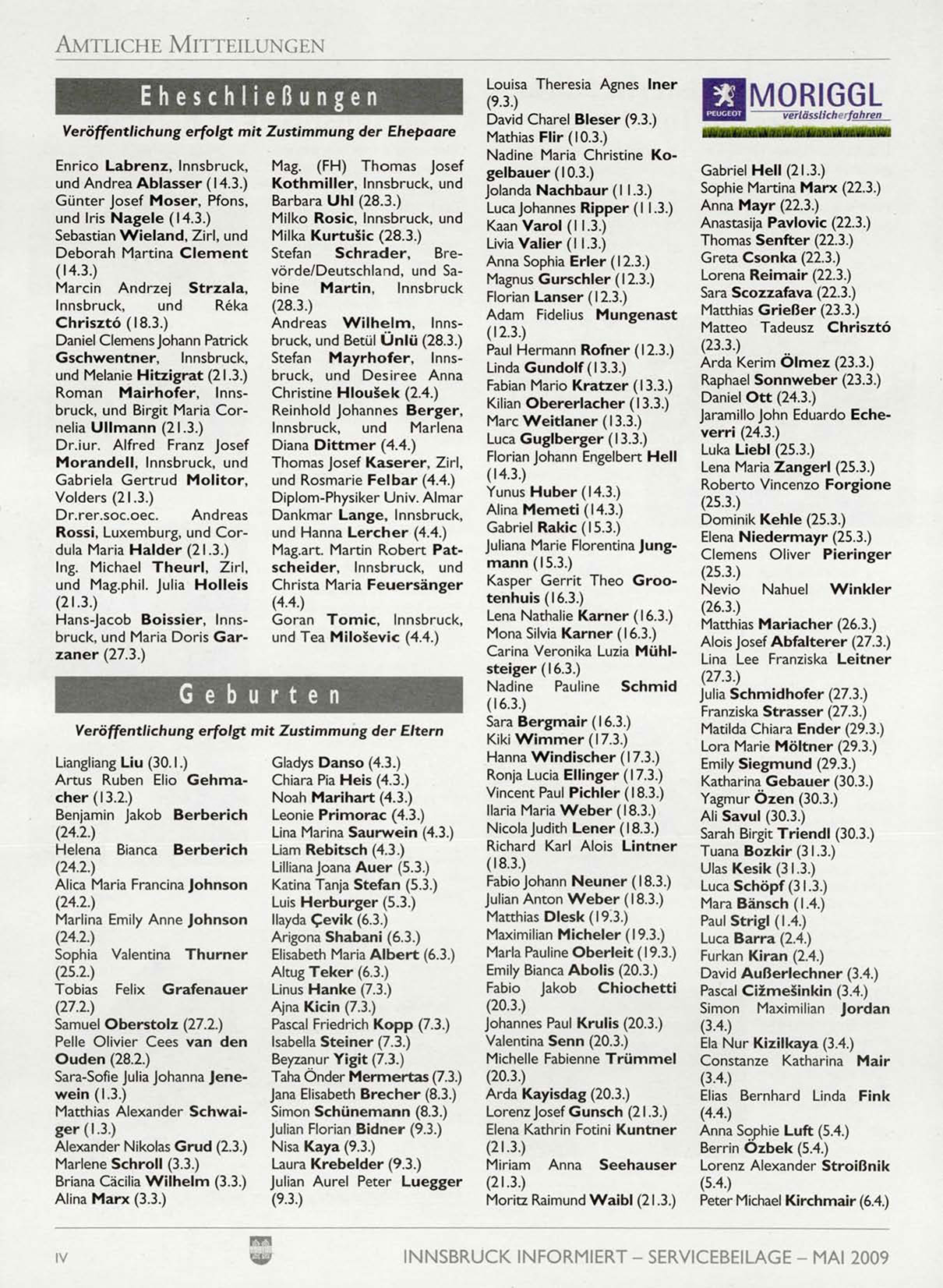INNSBRUCK INFORMIERT- SERVICEBEILAGE - MAI 2009