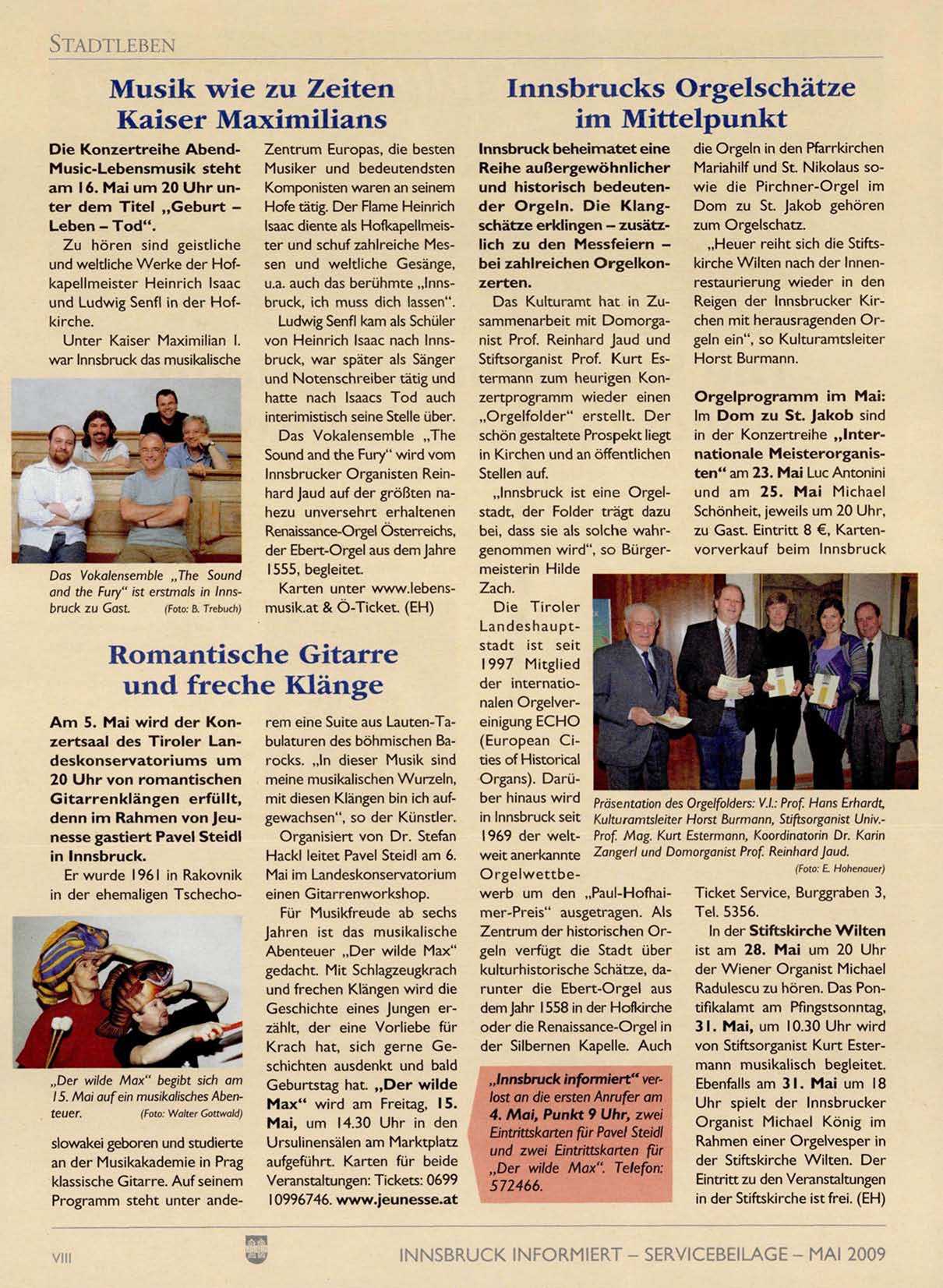 von Stiftsorganist Kurt Ester„Innsbruck informiert" verlost an die ersten Anrufer am