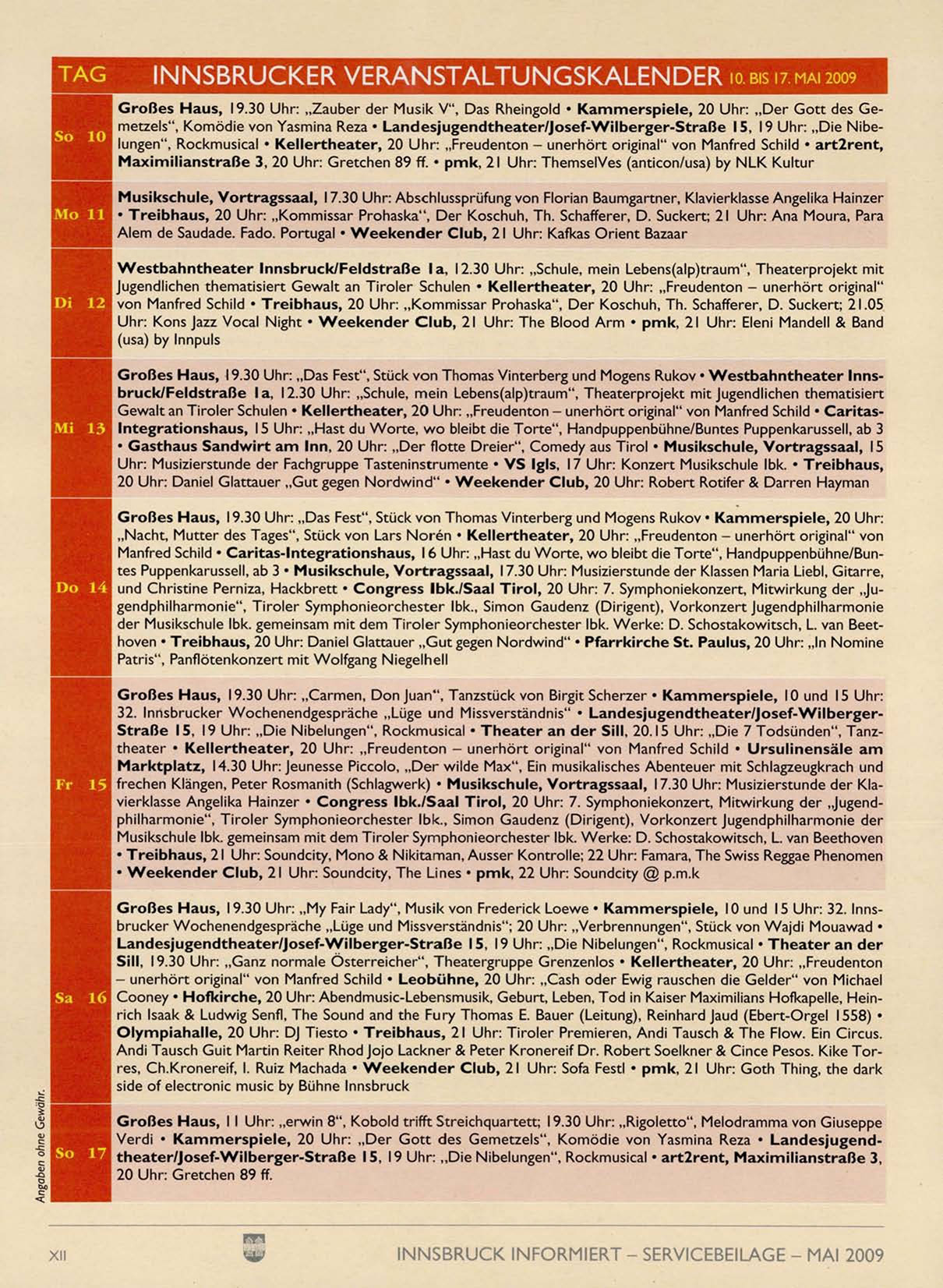 I N N S B R U C K E R V E R A N S T A L T U N G S K A L E N D E R io.BISn.MAI2009
