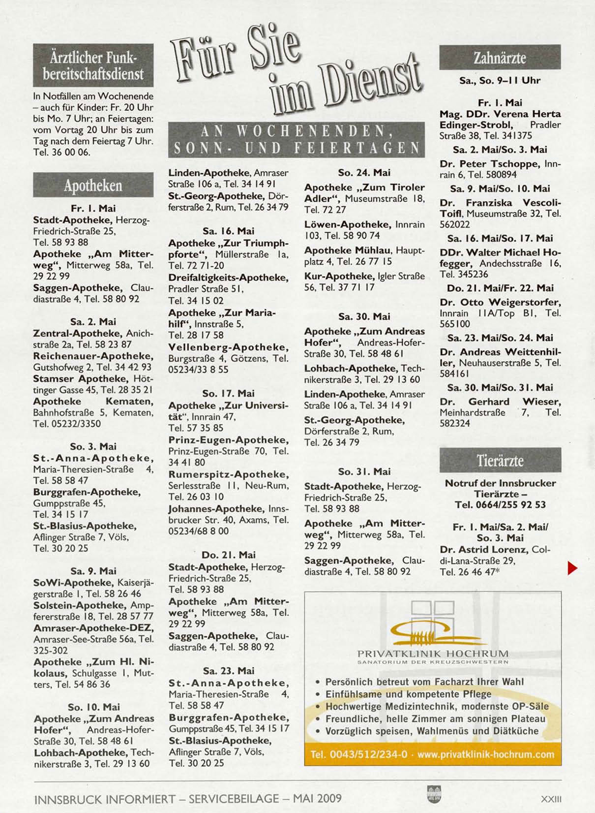 INNSBRUCK INFORMIERT - SERVICEBEILAGE - MAI 2009