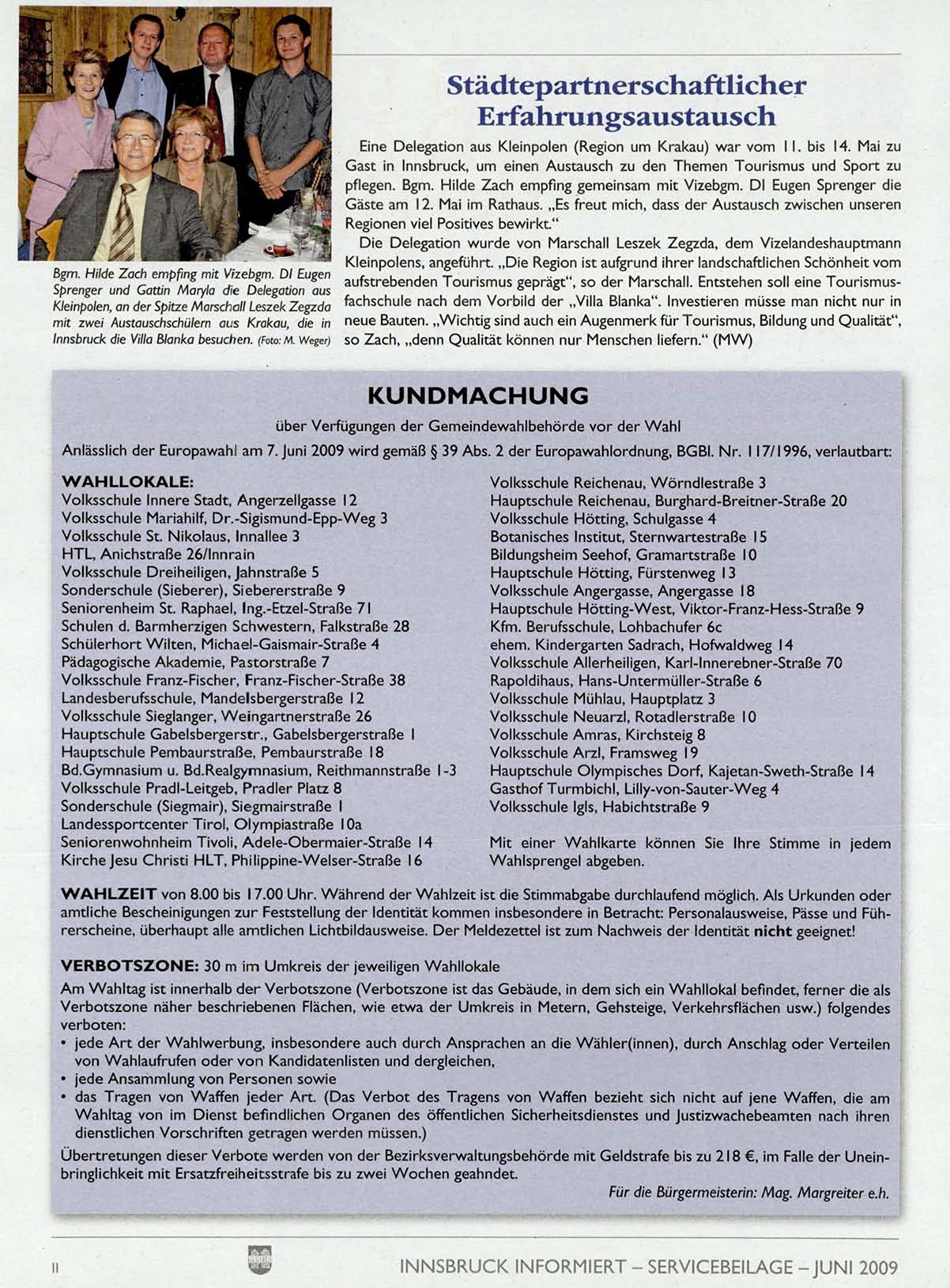 INNSBRUCK INFORMIERT - SERVICEBEILAGE -JUNI 2009