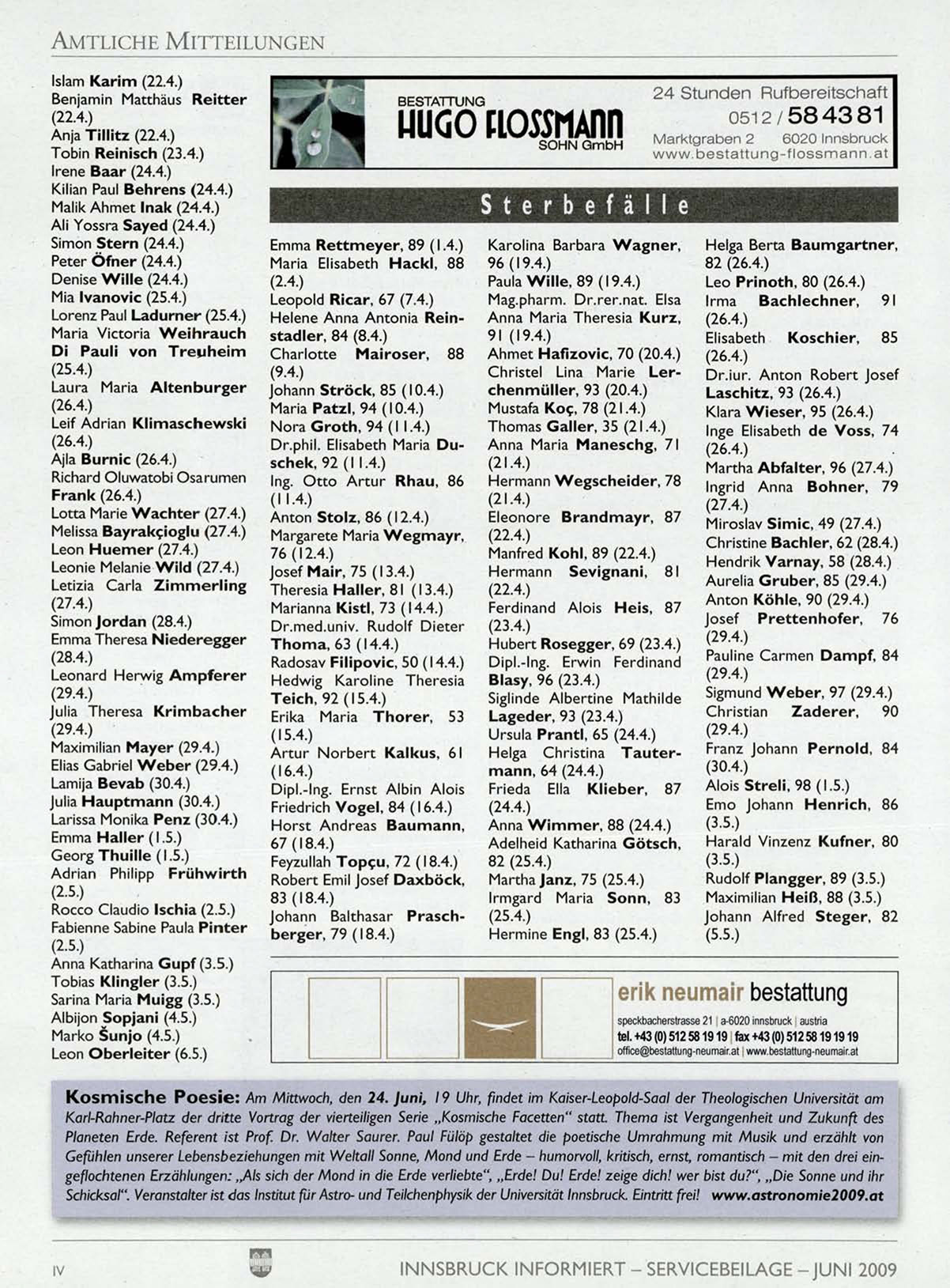 INNSBRUCK INFORMIERT - SERVICEBEILAGE -JUNI 2009