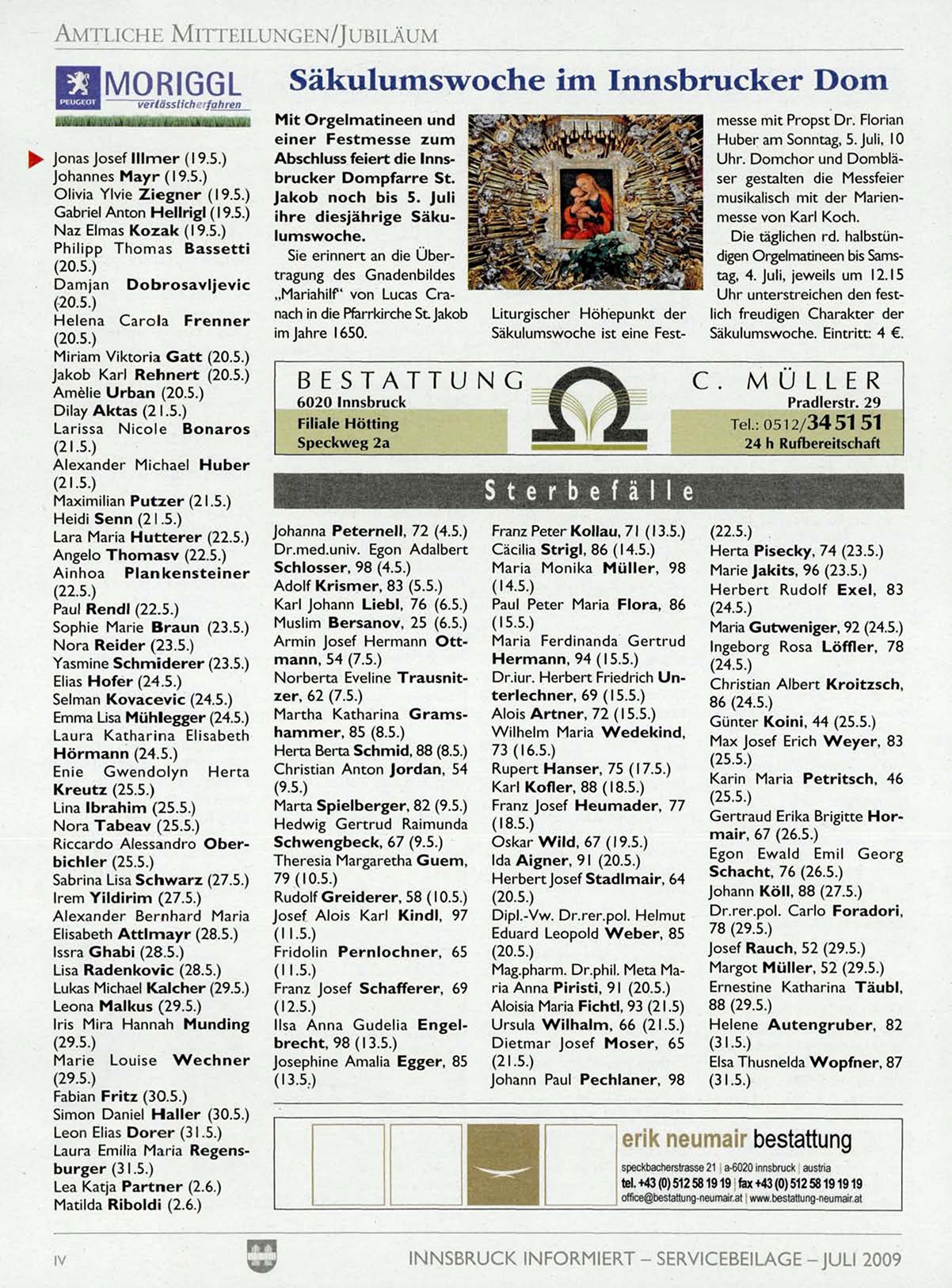 INNSBRUCK INFORMIERT - SERVICEBEILAGE -JULI 2009