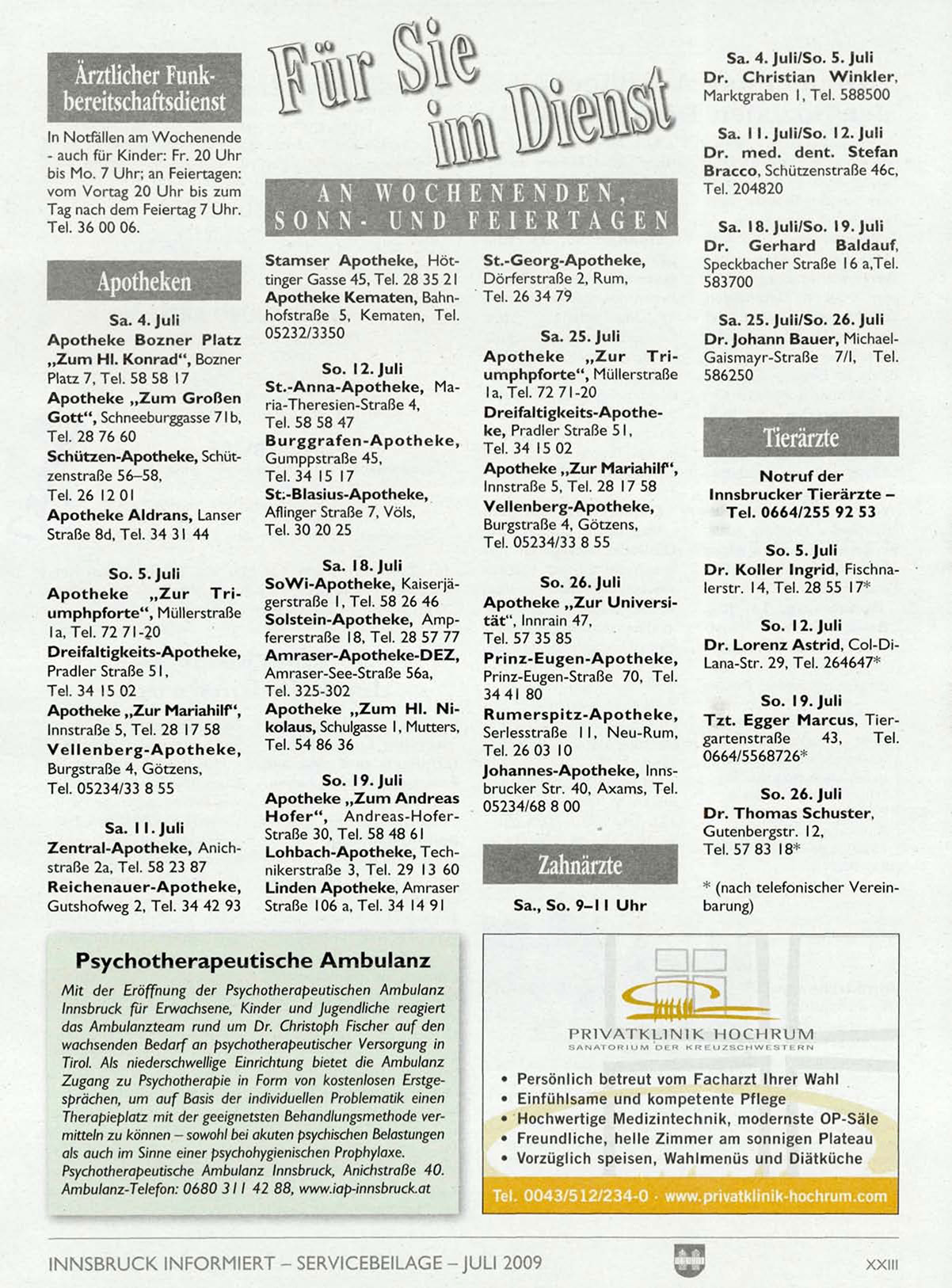 INNSBRUCK INFORMIERT - SERVICEBEILAGE - JULI 2009