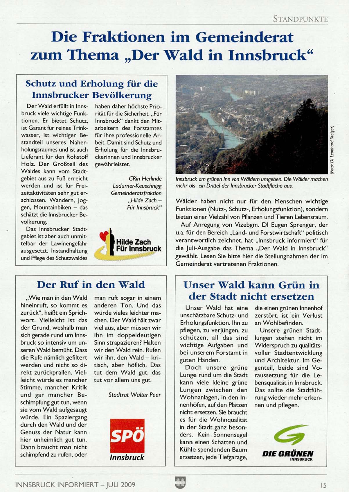 die Juli-Ausgabe das Thema „ D e r W a l d in Innsbruck"