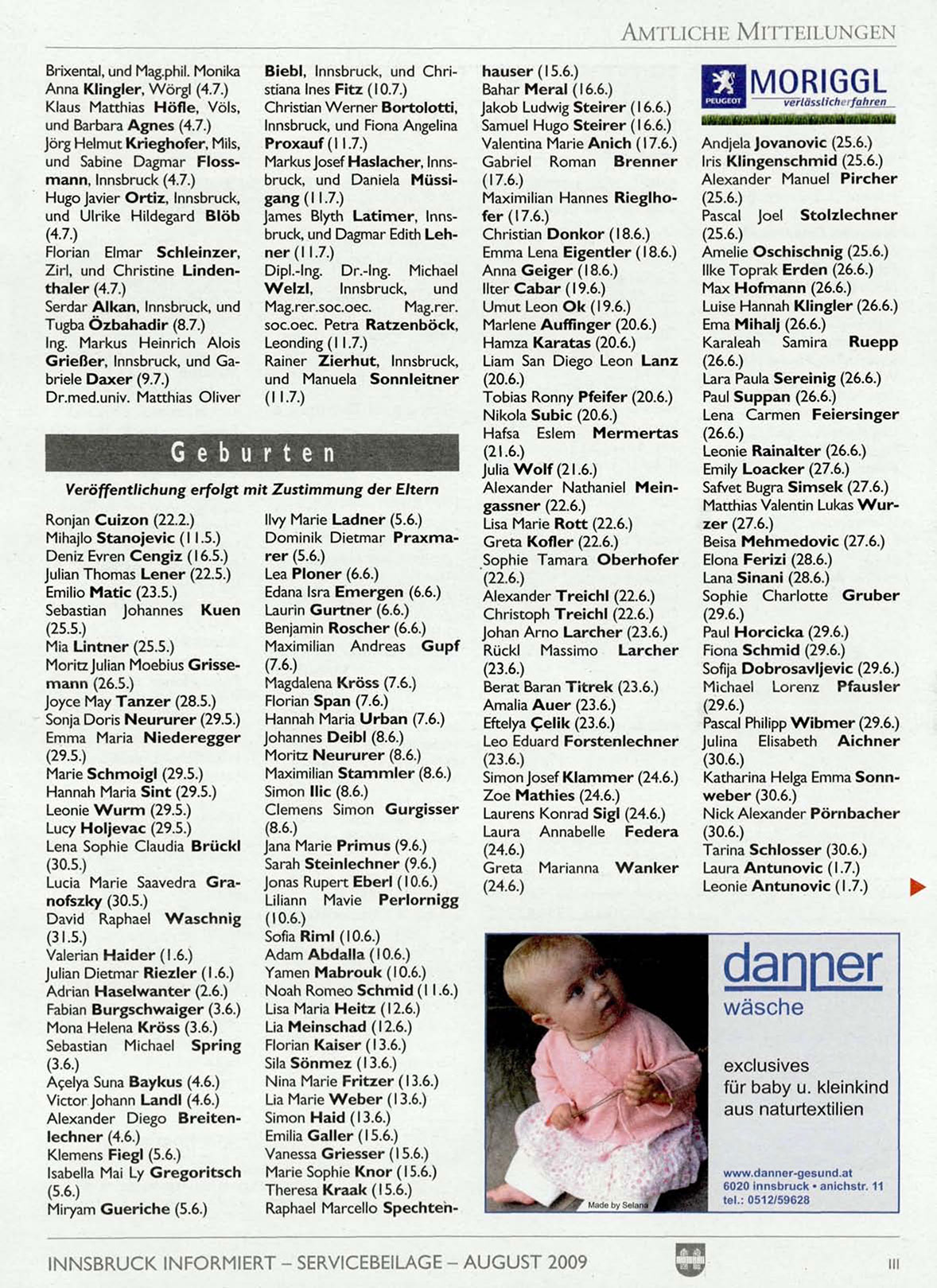 INNSBRUCK INFORMIERT - SERVICEBEILAGE - AUGUST 2009