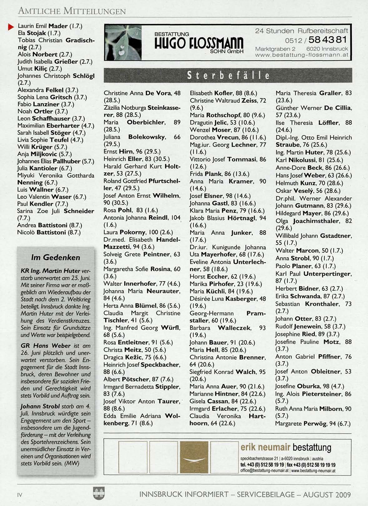 INNSBRUCK INFORMIERT - SERVICEBEILAGE - AUGUST 2009