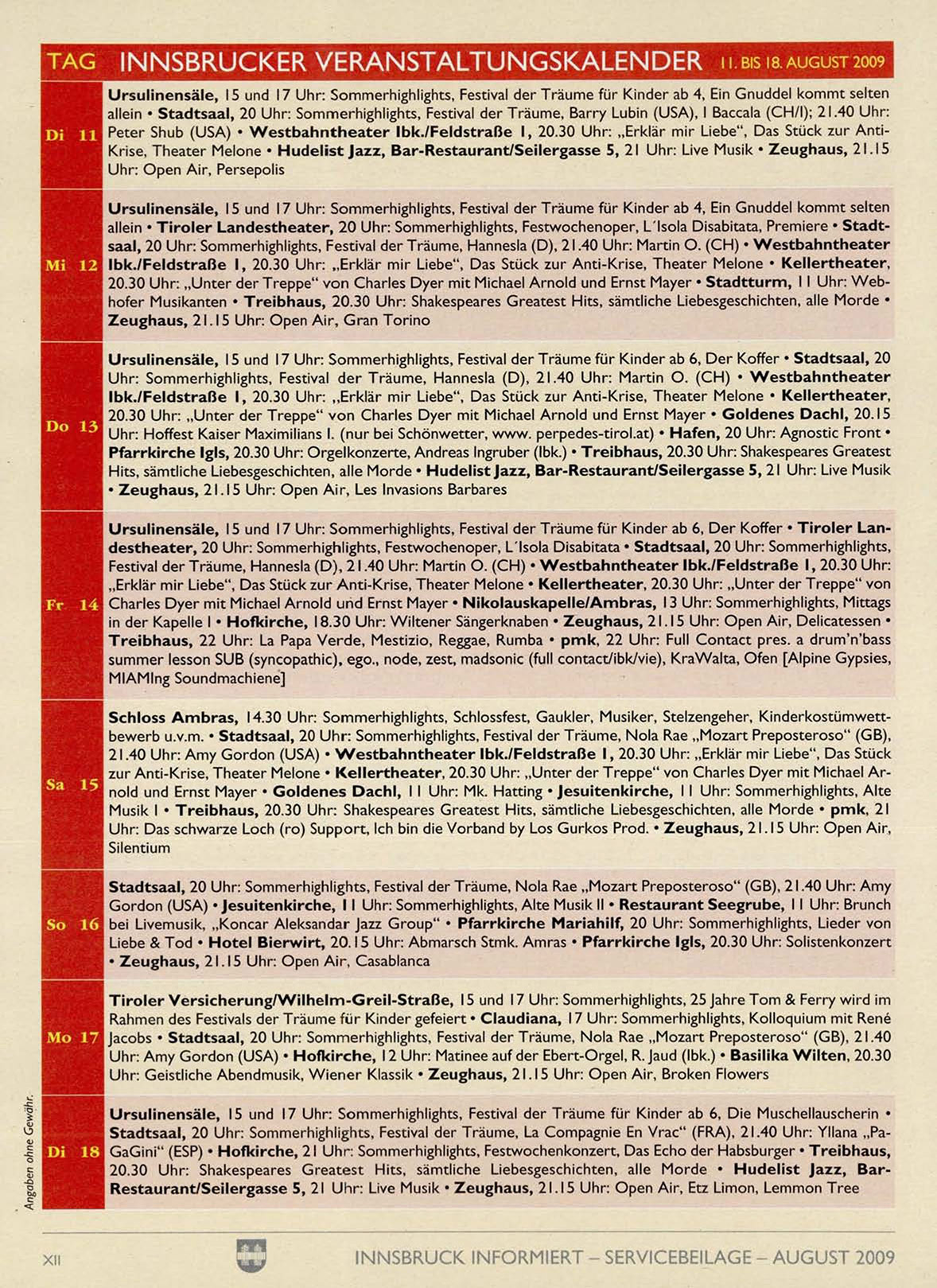 INNSBRUCK INFORMIERT - SERVICEBEILAGE - AUGUST 2009