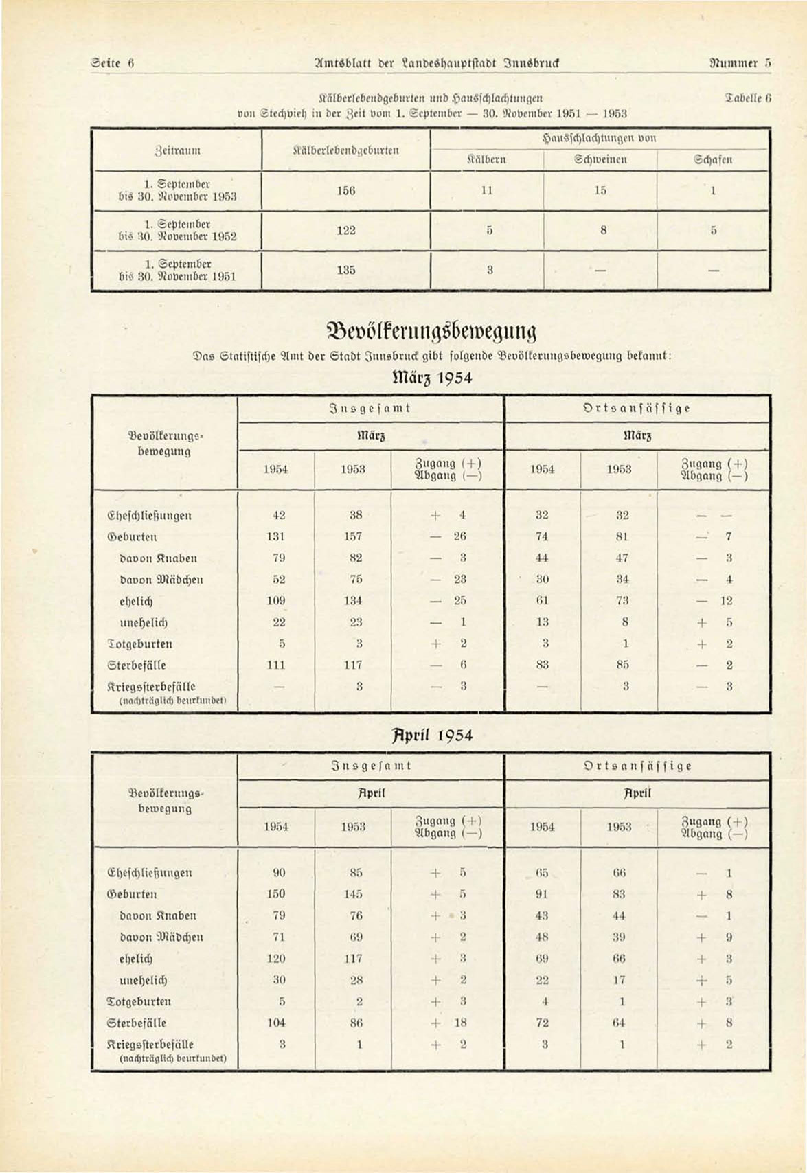 Das Statistische Amt der Stadt Innsbruck gibt folgende Veuölterungsbewegung bekannt!