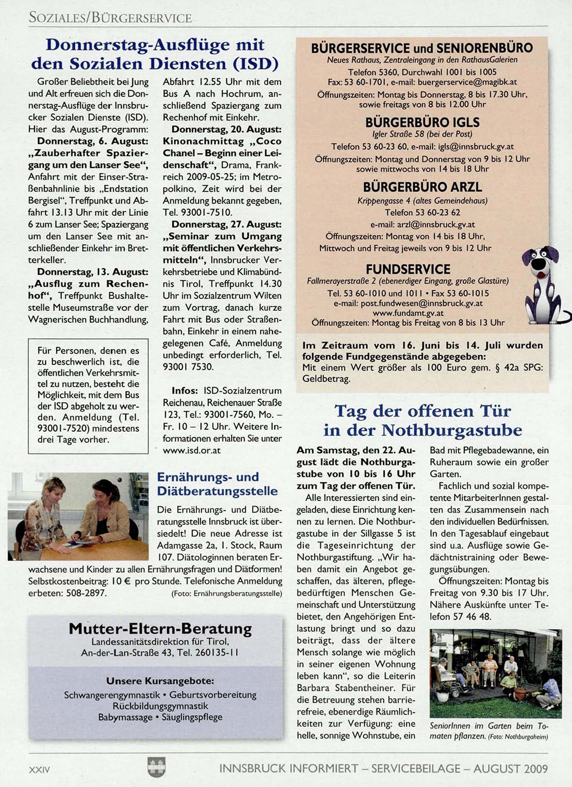 INNSBRUCK INFORMIERT - SERVICEBEiLAGE - AUGUST 2009