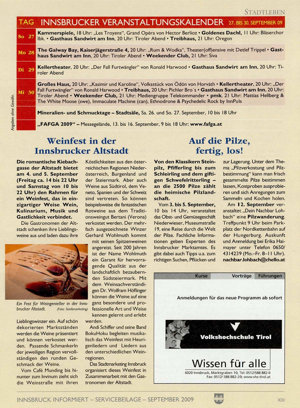 INNSBRUCKER VERANSTALTUNGSKALENDER 27. BIS 30.SEPTEMBER09