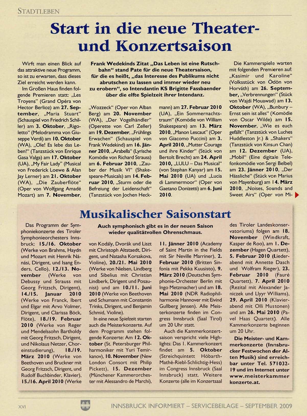 INNSBRUCK INFORMIERT - SERVICEBEILAGE - SEPTEMBER 2009