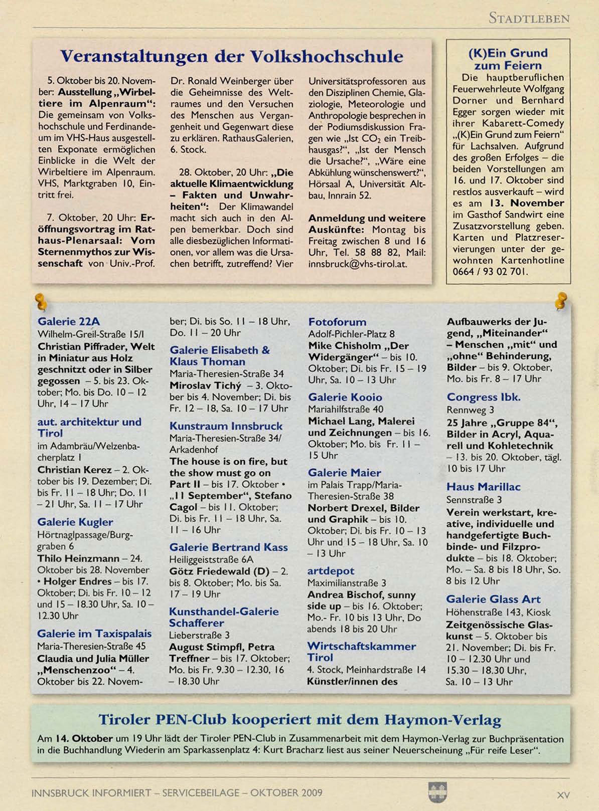 INNSBRUCK INFORMIERT - SERVICEBEILAGE - OKTOBER 2009