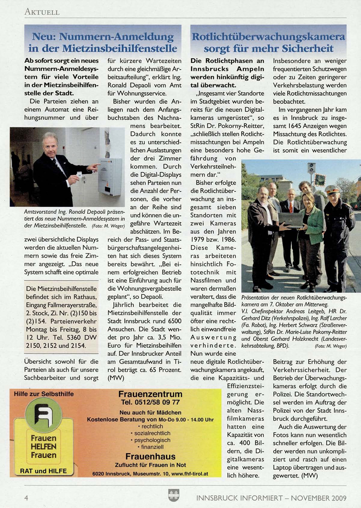 veraltert, dass die Präsentation der neuen Rotlichtüberwachungsmangelhafte Bild- kamera am 7. Oktober am Mitterweg.