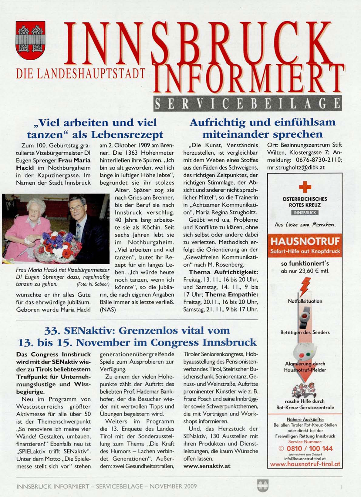 I N N S B R U C K INFORMIERT - SERVICEBEILAGE - NOVEMBER 2009