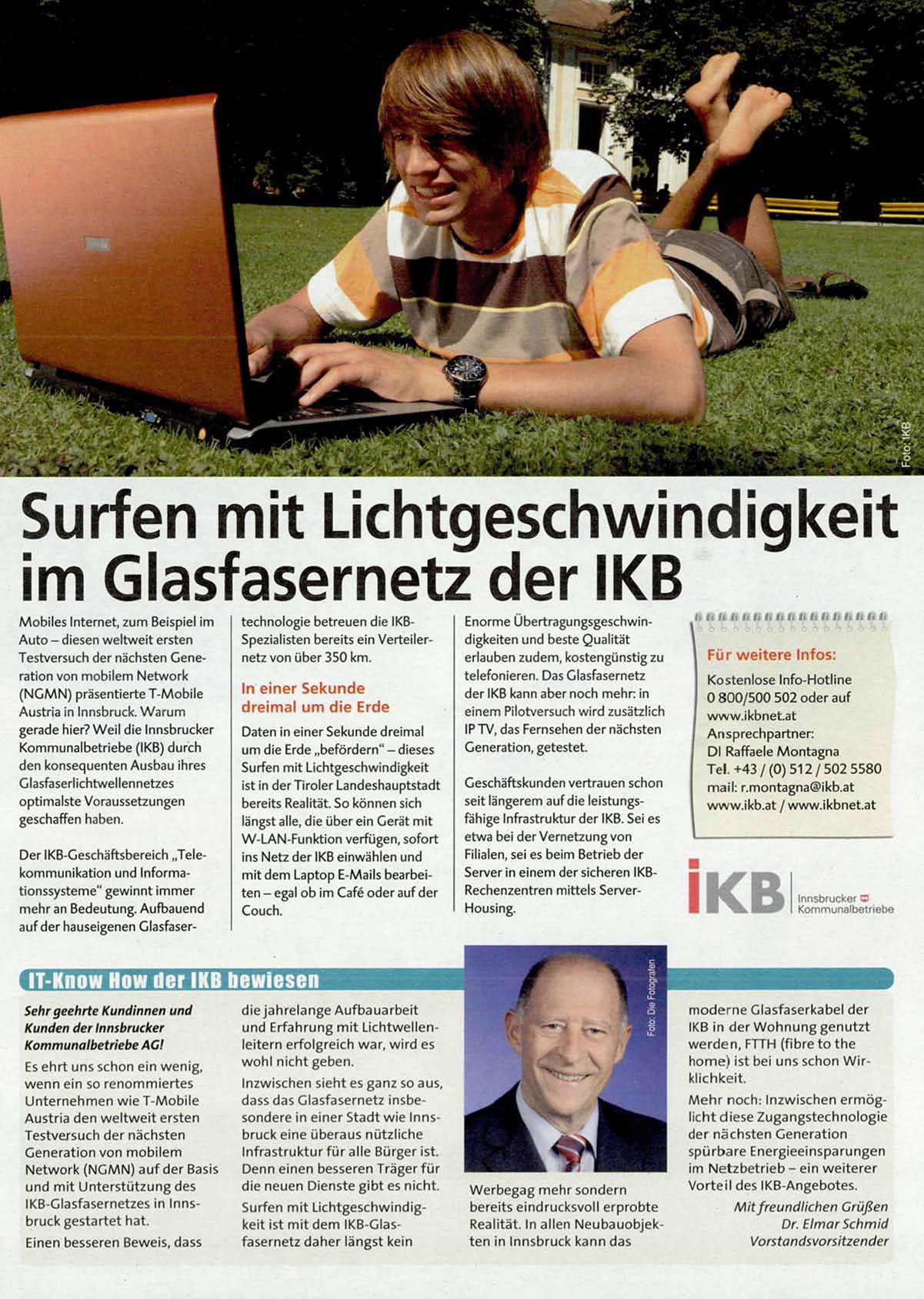 IKB-Glasfasernetzes in Innsbruck gestartet hat.