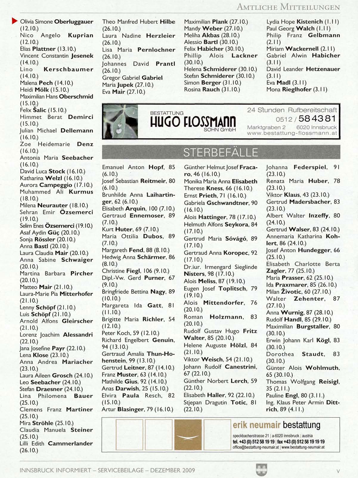 INNSBRUCK INFORMIERT - SERVICEBEILAGE - DEZEMBER 2009
