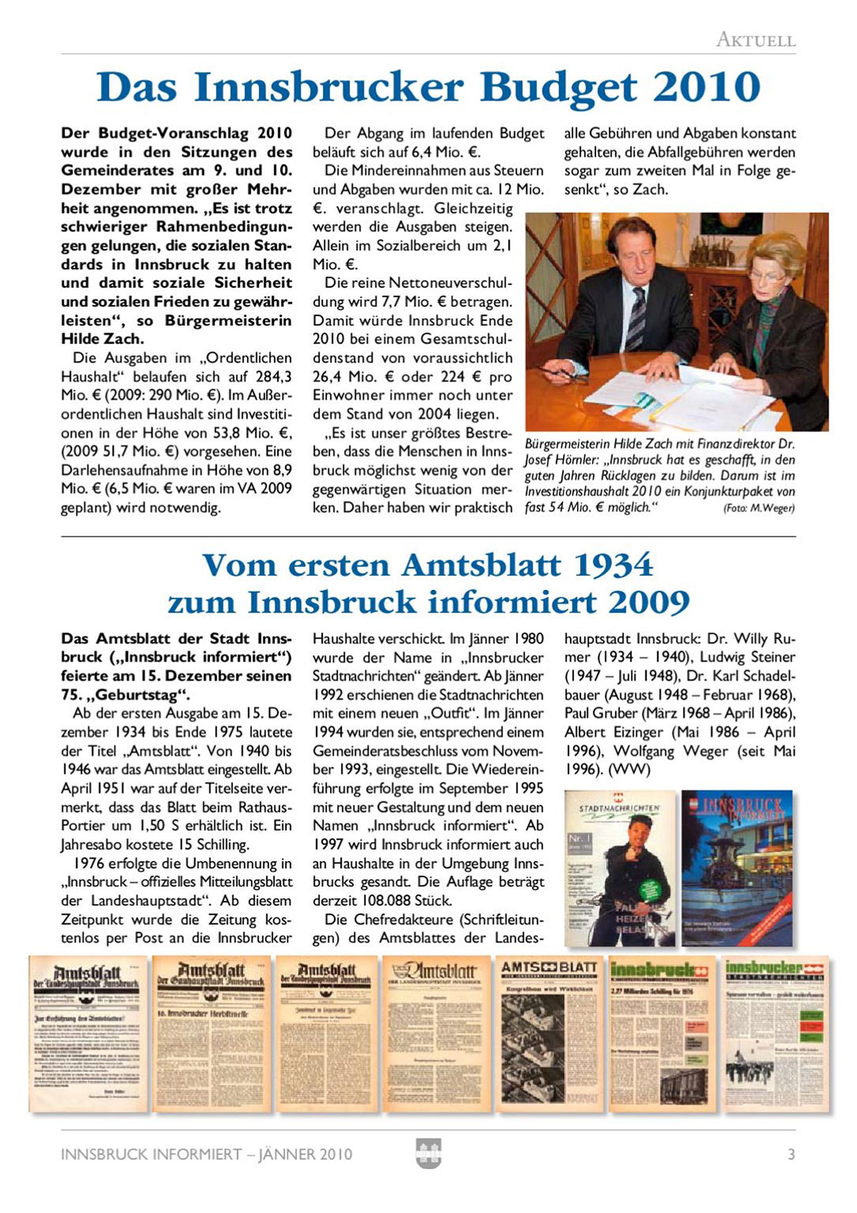 Vom ersten Amtsblatt 1934 zum Innsbruck informiert 2009