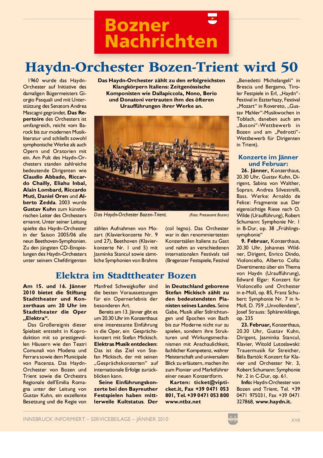 Info: Haydn-Orchester von Bozen und Trient, Tel. +39 0471 975031, Fax +39 0471 327868, www.haydn.it.