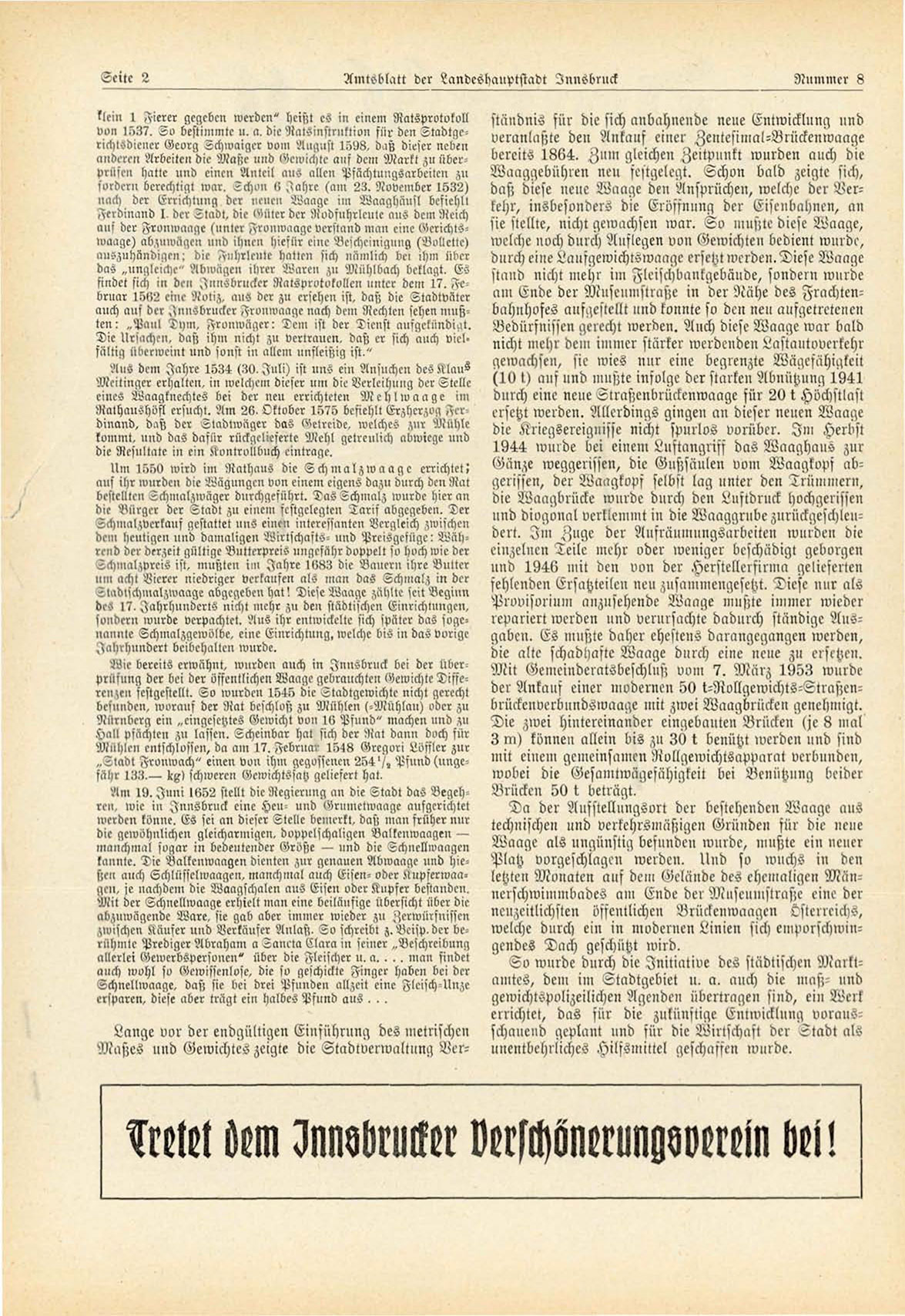 Am 19. Juni 1652 stellt die Negierung an die Stadt das Begehre», wie iii Innsbruck eine Hen- und Grumctwaage aufgerichtet