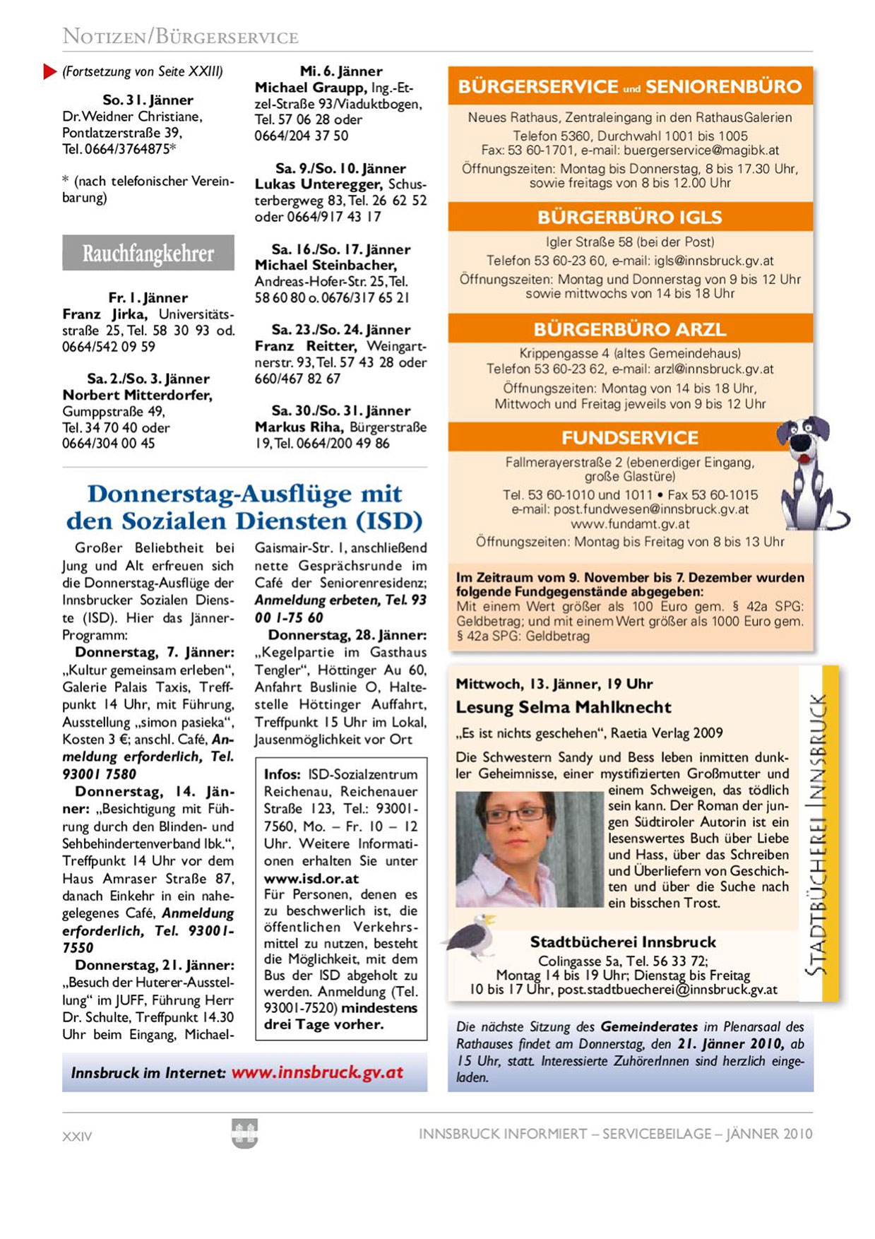INNSBRUCK INFORMERT - SERVICEBEILAGE—JANNER 2010