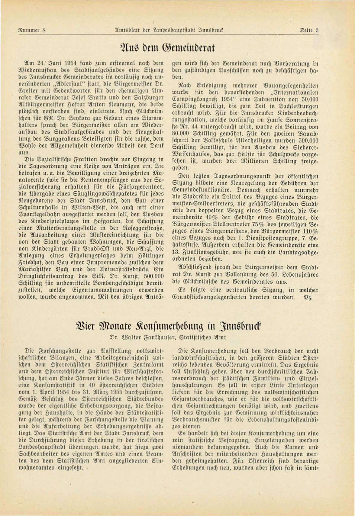 des Innsbrucker (Gemeinderales im vorläufig noch unveränderten „Adlersaal" statt, die Bürgermeister Dr.